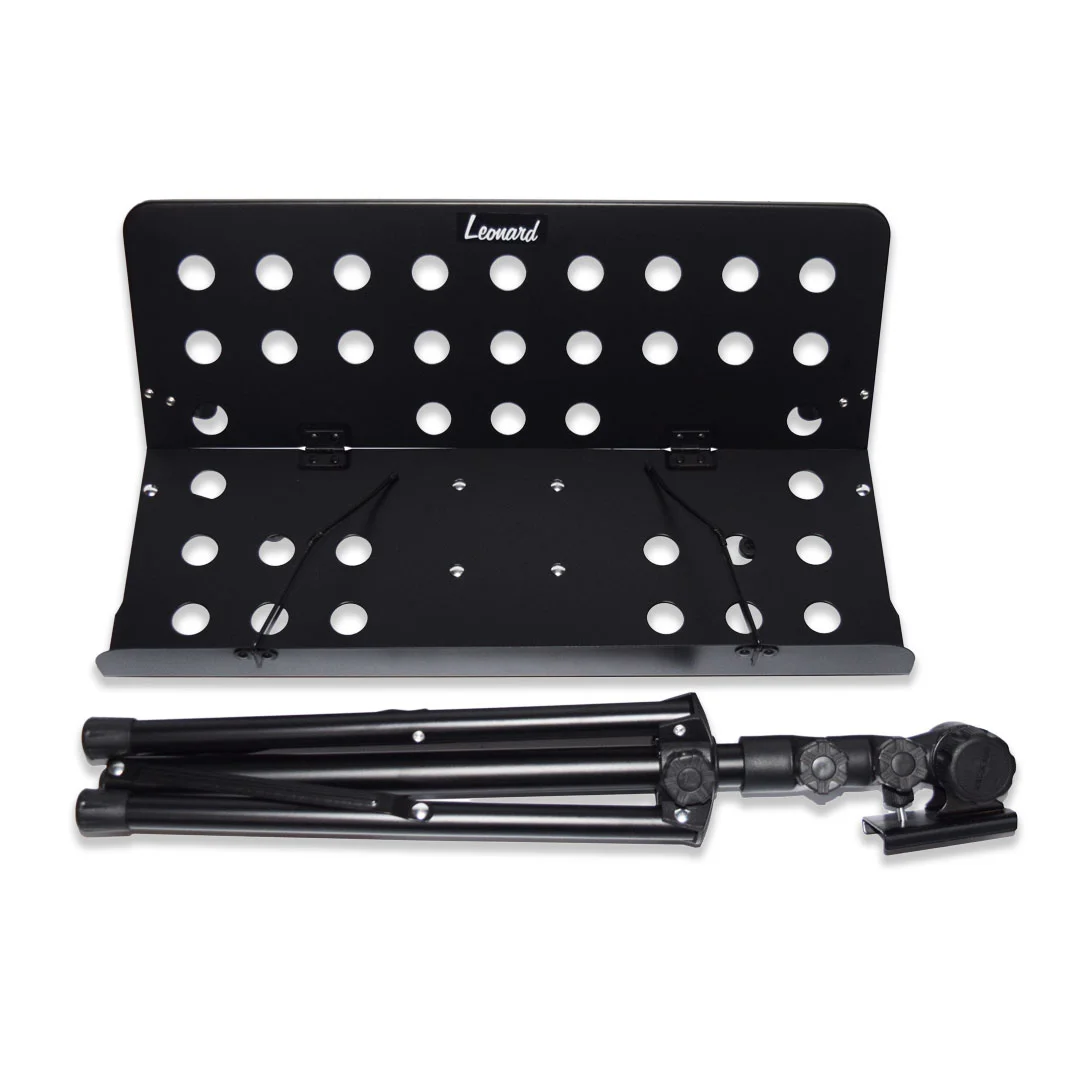 El Leonard LNDATD5 es un atril de director robusto y funcional, ideal para orquestas, ensayos y presentaciones profesionales. Su estructura sólida y diseño práctico incluyen una base firme y funda de transporte, lo que lo convierte en una opción confiable para el uso diario.